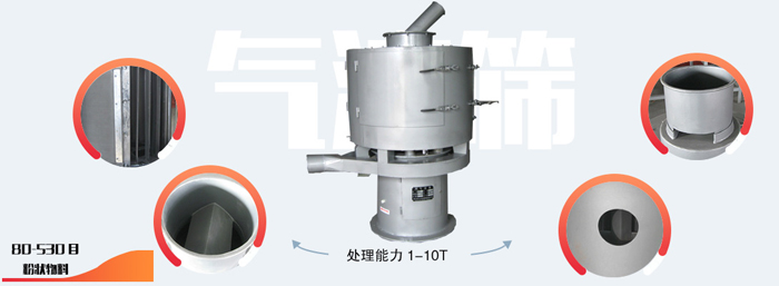 氣流篩可對細度范圍在80-500目內的粉狀物料很好的連續篩分,篩網可任意更換。它主要用來解決煤粉精篩比重輕大產量等篩分難題!氣流篩的篩分效率非常高,可達到95%以上。單臺每小時工作產量是普通振動篩的5-10倍
