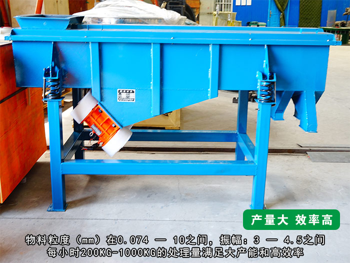 它作為一臺小型號的直線振動篩,可篩分的物料粒度(mm)在0.074 — 10之間,振幅:3 — 4.5之間,每小時200KG-1000KG的處理量滿足大產能和高效率!
