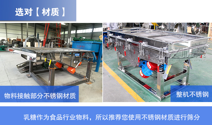 注:乳糖為食品行業(yè)物料,所以推薦您使用不銹鋼材質(zhì)的振動篩