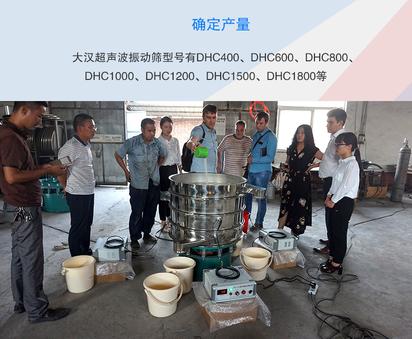 產量決定了超聲波振動篩型號的選擇,大漢超聲波振動篩型號有DHC400、DHC600、DHC800、DHC1000、DHC1200、DHC1500、DHC1800等,后綴數字代表的是篩機的篩面尺寸,篩面直徑是直接關系到產量,所以在選型時要明確自身對于產量的要求。