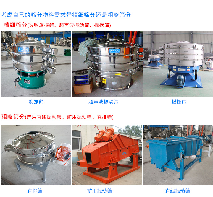 直線振動篩 超聲波振動篩 旋振篩 氣流篩 搖擺篩 直排篩 過濾篩