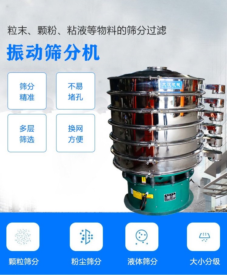 振動篩分機用于批次分級或粉末和液體的安全篩選,它從您的粉末和液體中去除過大的污染物,也可以準確地分離您的粉末和顆粒它可以分為不同的尺寸,并且可以分類濕或在一次操作中干燥多達 6 個級別的材料。廣泛應用于食品飲料、醫藥、粉末涂料、金屬粉末、化工、農業、塑料等行業。