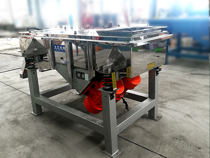 食品直線振動篩主要由篩箱、篩框、篩網、振動電機、電機臺座、減振彈簧、支架等組成。